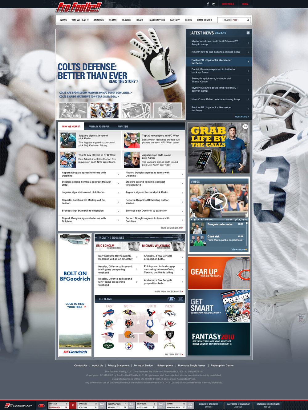 Pro Football Weekly was looking for a site refresh to accommodate more site content, revenue channels, and of course, scream FOOTBALL. Site comps developed with the folks at The Material Group.